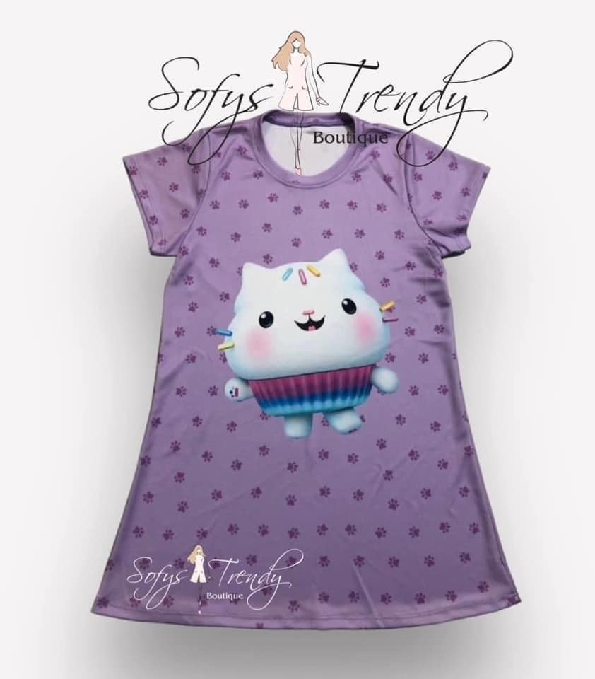 Vestido Infantil Gatito Pastelito Fondo Huellitas